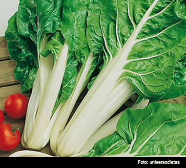 Con 10 calorías cada 100 gramos. Las acelgas se caracterizan más que por tener un gran porcentaje de hidratos de carbono por tener una alta cantidad de agua. De ahí la razón de su peso. No es entonces una verdura energético sino más bien un alimento rico en reguladores naturales. Tiene una alta presencia de vitaminas, sales minerales y también fibra. La abundancia de yodo que se puede encontrar en esta verdura, es beneficioso para nuestro metabolismo, regulando nuestro nivel de energía y el correcto funcionamiento de las células.